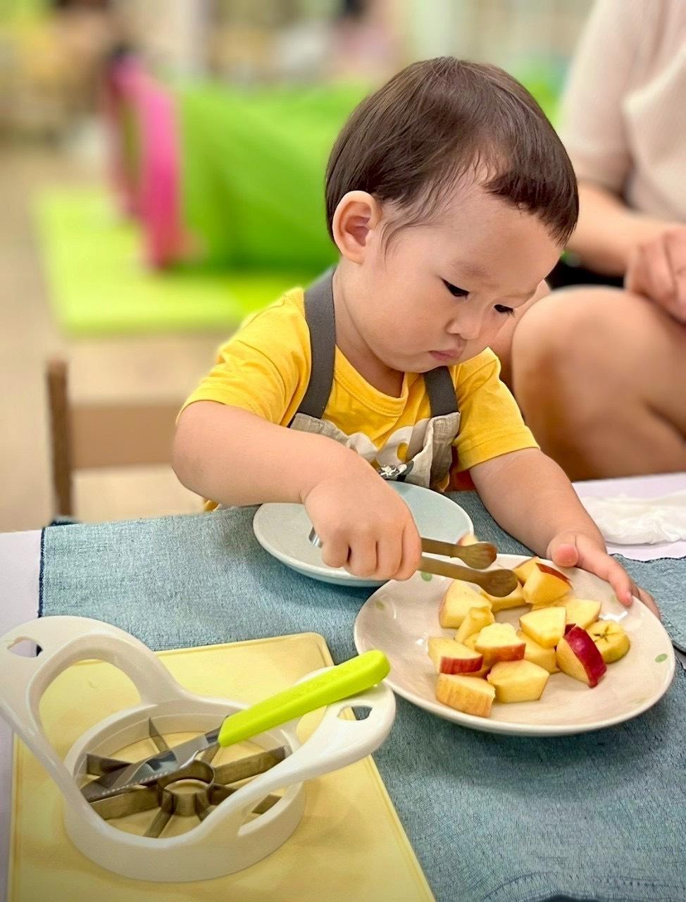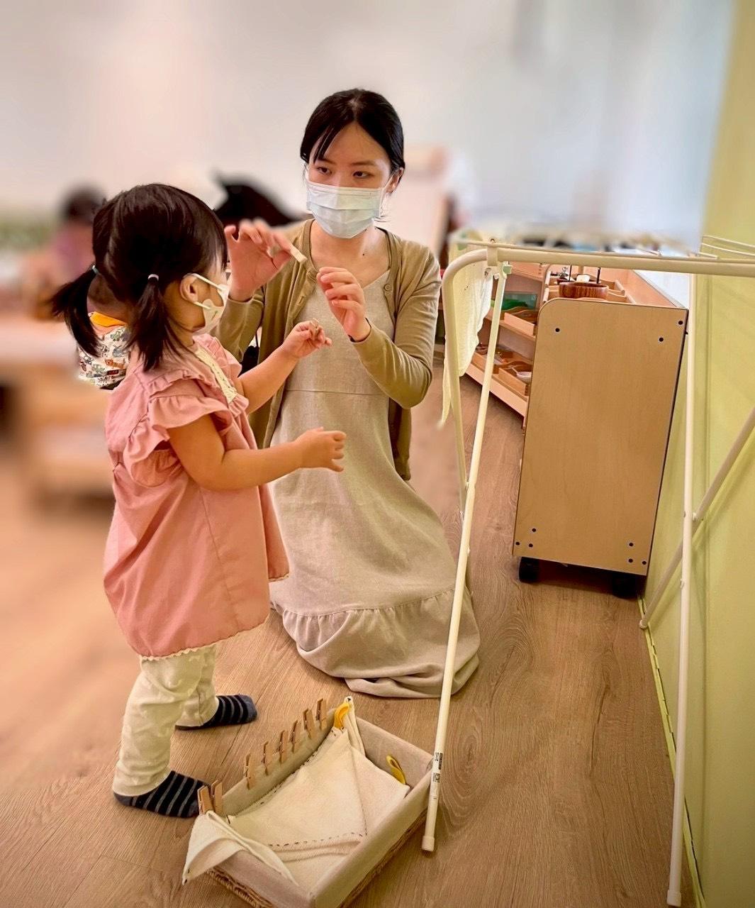以霏霏為例,從1歲3個月開始進到教室,剛開始面對挑戰容易情緒化、也不太願意收拾工作。但經過3、4個月後,我們看見孩子越來越有耐心、願意嘗試、學習溝通,收拾工作變成一件自然的事,脾氣也不再是唯一的表達方式。